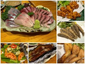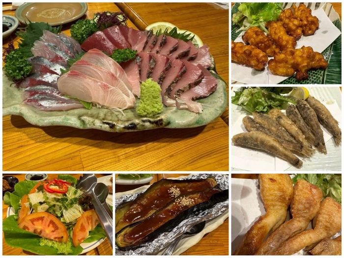 地元のお刺身の盛り合わせやとうもろこしのかき揚げ